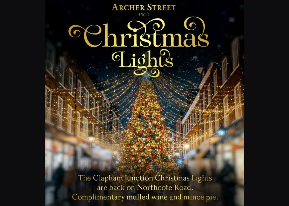 The Clapham Junction Christmas Lights are back on Northcote Road and Archer Street SW11 will be bringing festive cheer with entertainment and complimentary mulled wine and mince pies!