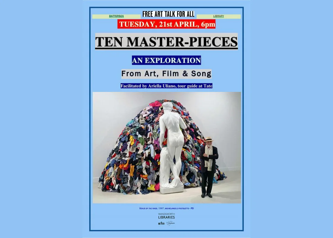 Ten Masterpieces is an exploration of art, film and song at Battersea Library, facilitated by Ariella Uliano, Tour Guide at The Tate.