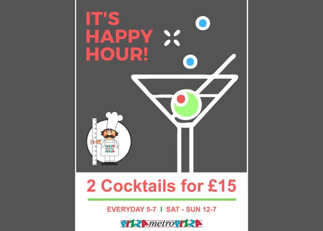 Sip, relax, repeat. Two cocktails for just £15 at Pizza Metro Pizza on Battersea Rise. The perfect excuse to make every hour happy!