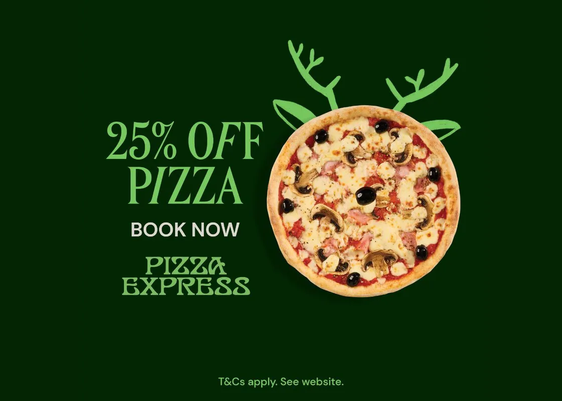 You won’t find a workshop full of elves ticking tasks off your to-do list at PizzaExpress on Lavender Hill, or a bunch of reindeer to carry your bags. But you will find 25% off pizza, all day, every day until the 23rd of November!