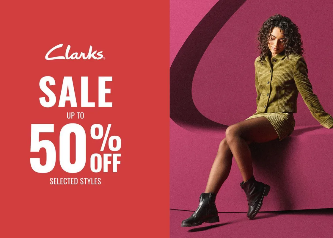Receive up to 50% OFF selected styles at your local Clarks on St John's Road! Exclusions apply.