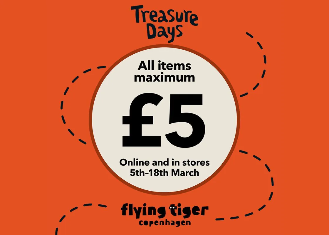 Treasure Days are back at Flying Tiger on St John's Road! Everything is priced at £5 or less from 05/03/26–18/03/26!