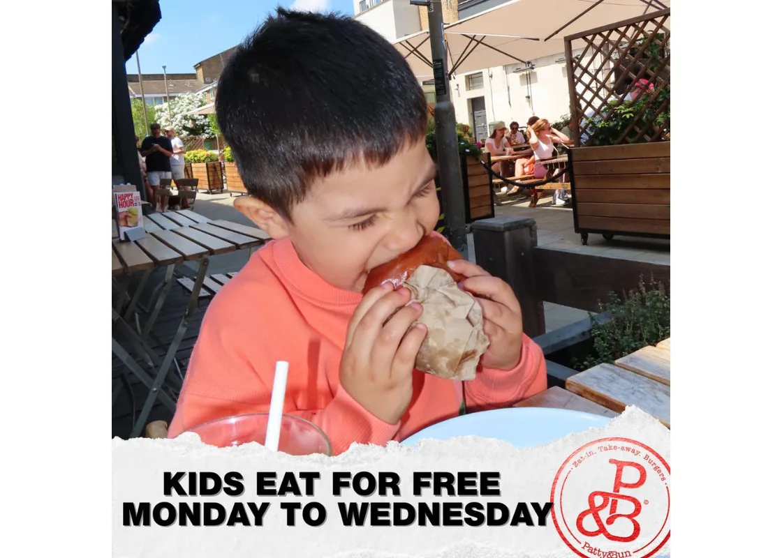 At Patty and Bun on Northcote Road, kids eat for free Monday to Wednesday!