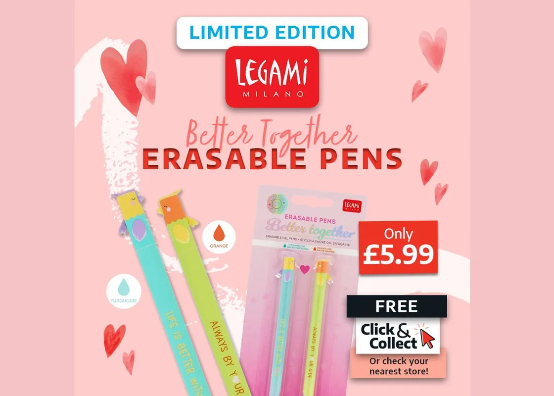 Look who's arrived! Better together and in love forever, welcoming these two inseparable love birds... The NEW limited edition Legami erasable pens have joined the family just in time for Valentine's Day. Available in-store at Ryman on St John's Road for only £5.99.