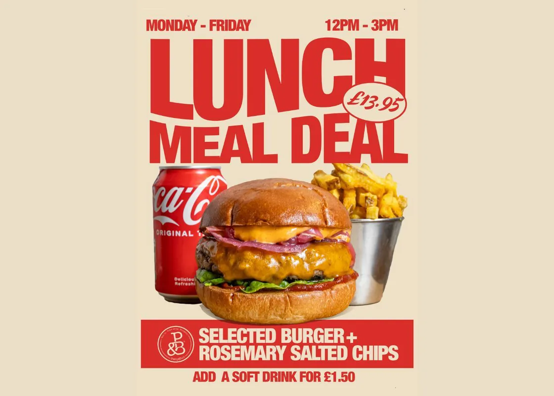 Burger and Chips for just £13.95 at Patty and Bun on Northcote Road. Valid Monday to Friday, 12.00 to 15.00. Add a soft drink for £1.50.