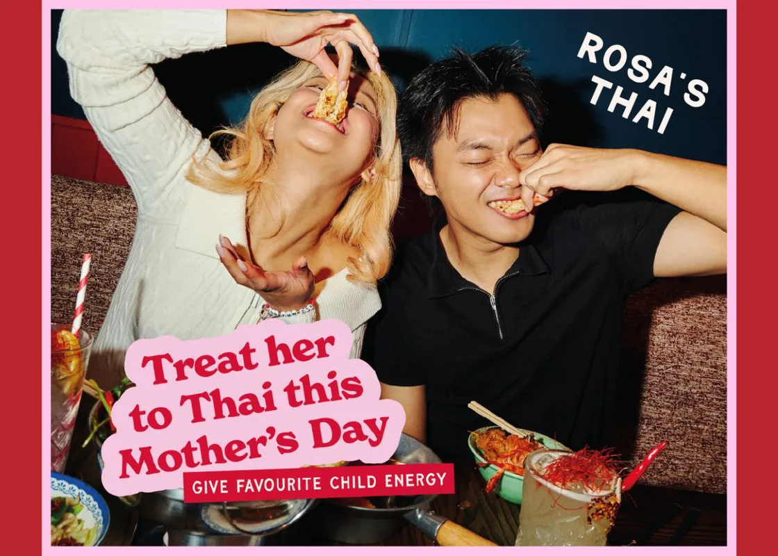 Because it’s her day, we’re throwing in a little treat for all the motherly figures out there. Mums get a free glass of Prosecco, a Bangkok Spritz, or a non-alcoholic Nam Dang Manao when you dine at Rosa’s Thai on Mother’s Day.