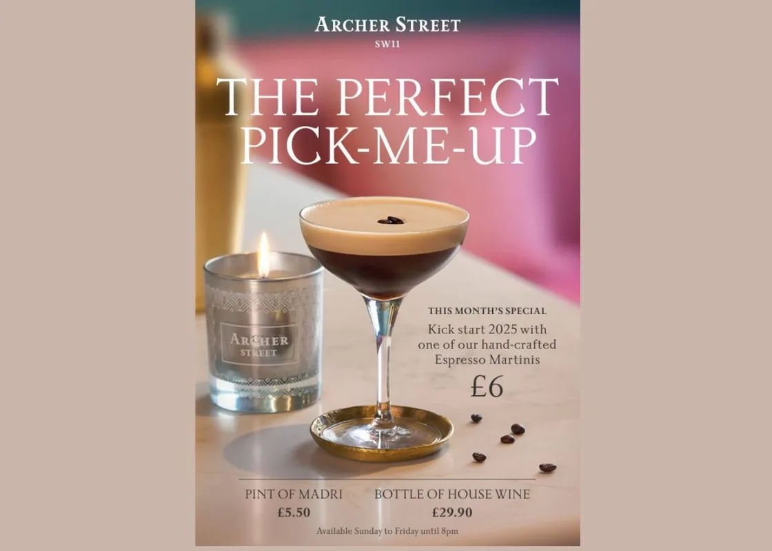 Kick-start 2025 with Archer Street's hand-crafted Espresso Martini for just £6! Other offers include: